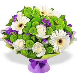 Черничный пломбир – букет из гербер и кустовых хризантем