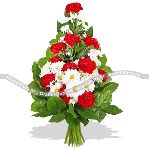 Триколор - композиция на оазисе из гвоздик и хризантем