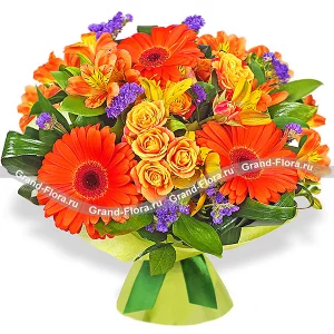 Цветные кружева - букет из оранжевых роз и альстромерий