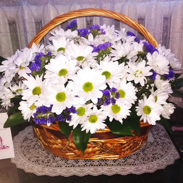 Корзинка отличная! Как будто ромашек охапка! Цветы свежие и доставлено все быстро!спасибо!!!