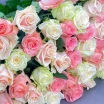 Роза белая (кремовая) и розовая (50-60см) - 101 шт , упаковка фетр. На фото представлен букет из 51 розы.